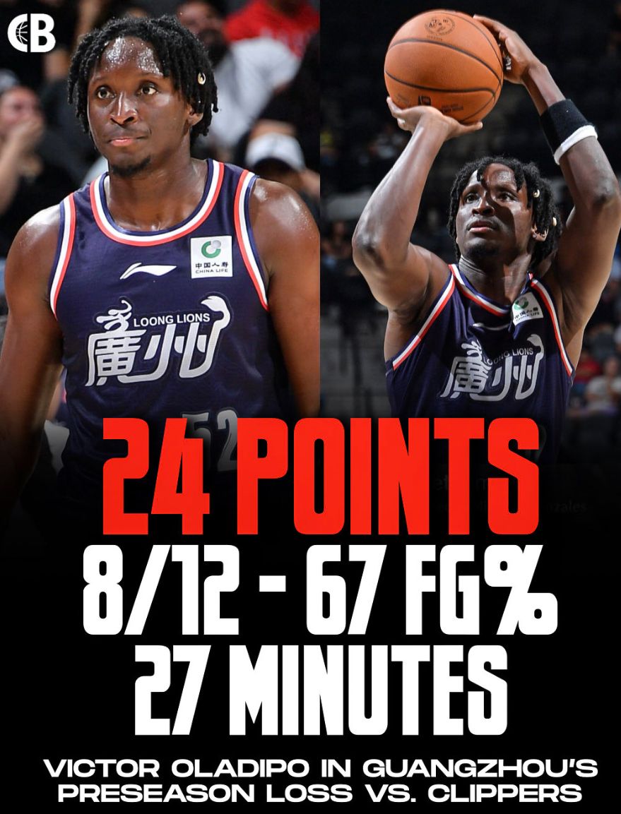 上一场对阵快船,奥拉迪波27分钟,12中8,三分4中2,拿到24分5助攻2抢断1盖帽,命中率66.7%;