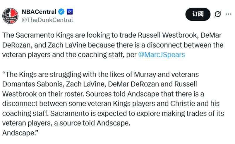 队内薪资最高的几位老将,仍是球队交易策略的核心考量对象。拉文、德罗赞和萨博尼斯能为球队提供得分火力与赛场经验;威斯布鲁克尽管效率有所下滑,但依然具备串联进攻的组织能力。送走这几名球员中的一人或多人,将为球队创造调整空间,围绕穆雷等新星打造全新阵容。