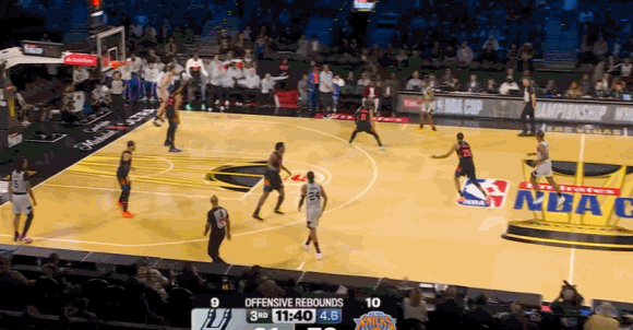 易边再战,福克斯连中两记三分,科内特空接扣篮,马刺打出一波8-2。布里奇斯三分命中,巴恩斯补篮打成2+1,布伦森抛投命中。文班亚马空接背扣,哈珀连得7分,马刺已经领先11分。唐斯连得4分,布里奇斯突破得分,文班亚马找回手感,连得10分。克拉克森、科勒克也连中三分,布伦森上篮得分,三节战罢,马刺94-89领先尼克斯。