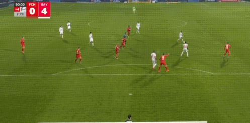 第90+3分钟,格纳布里传球,凯恩禁区内晃动后低射破门,拜仁4-0