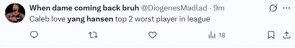开拓者球迷:球队试图让外界相信杨瀚森是一个不错的球员。