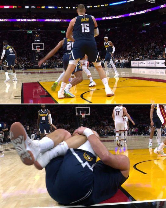 在掘金对阵热火的比赛中,约基奇的队友斯宾塞-琼斯后退时不慎踩中他的脚部,导致其膝盖过度伸展。约基奇随即倒地并紧捂膝盖,在队医紧急处理后一瘸一拐返回更衣室。他最初被列为"回归成疑"状态,但最终确定缺席下半场比赛。
