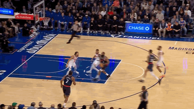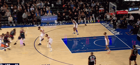 末节,米勒两罚一中,唐斯打成2+1后又上篮得手,科勒克突破得分,尼克斯领先9分。祖巴茨扣篮,唐斯连续得分,阿奴诺比扣篮,科林斯也连得6分,布伦森中投命中,亚布塞莱又连得5分。哈登上篮得分,邓恩三分命中,祖巴茨补篮得分,科林斯三分命中,快船还落后9分。阿奴诺比也命中三分,布里奇斯篮下得分。比赛最后1分32秒,双方撤下主力,比赛胜负失去悬念。最终,尼克斯主场击败快船。