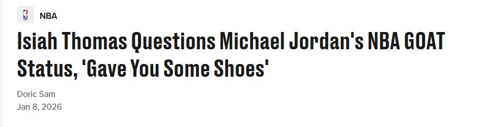 北京时间1月9日,篮球名人堂成员“微笑刺客”伊塞亚-托马斯再度点燃与传奇球星迈克尔-乔丹之间的恩怨。在做客《追根溯源》节目时,托马斯被问及对NBA黄金时代争议的看法,他借此机会直言,勒布朗-詹姆斯才是超越乔丹的历史最佳球员。